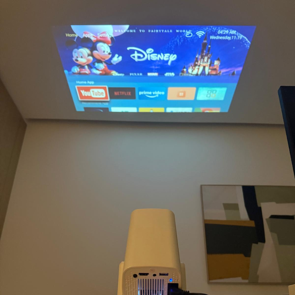 Jag är mer av en “plug-and-play”-person och gillar när saker bara funkar direkt. Det gör den här projektorn. Jag ställde den på en hylla, slog på Netflix i projektorn och var igång på två minuter. Bilden är mycket bättre än jag trodde att en så liten projektor kunde leverera.